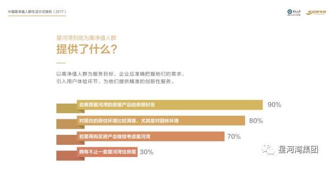 值得一提的是,星河灣并未獨享這些理論成果,而是將其開放給全社會,以期行業借鑒及交流。在《中國高凈值人群生活方式報告》的加持下,高凈值人群的服務鏈條將更加完善。
