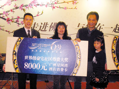 項目動態:本月11日,星河灣地產“走進佛山 與您在一起———新春盛品名宴”在佛山皇冠假日酒店溫馨啟幕。邀請到近百名佛山高端人士、星河灣業主及其親友,包括佛山商會代表、匯豐銀行佛山VIP客戶代表、知名企業主和高管等歡聚一堂,共話友誼。席間,星河灣精心準備的爵士樂演奏,和民間絕活“變臉”的精彩表演,引起嘉賓陣陣掌聲。更聯合多家廣州、佛山的知名品牌商家一起為來賓提供了價值百萬的豐厚禮品與巨額優惠?;顒釉鲞M了佛山客戶對“星河灣”品牌的認同,更擴大了星河灣地產以及 “星河灣6號”在佛山高端人群中的影響。